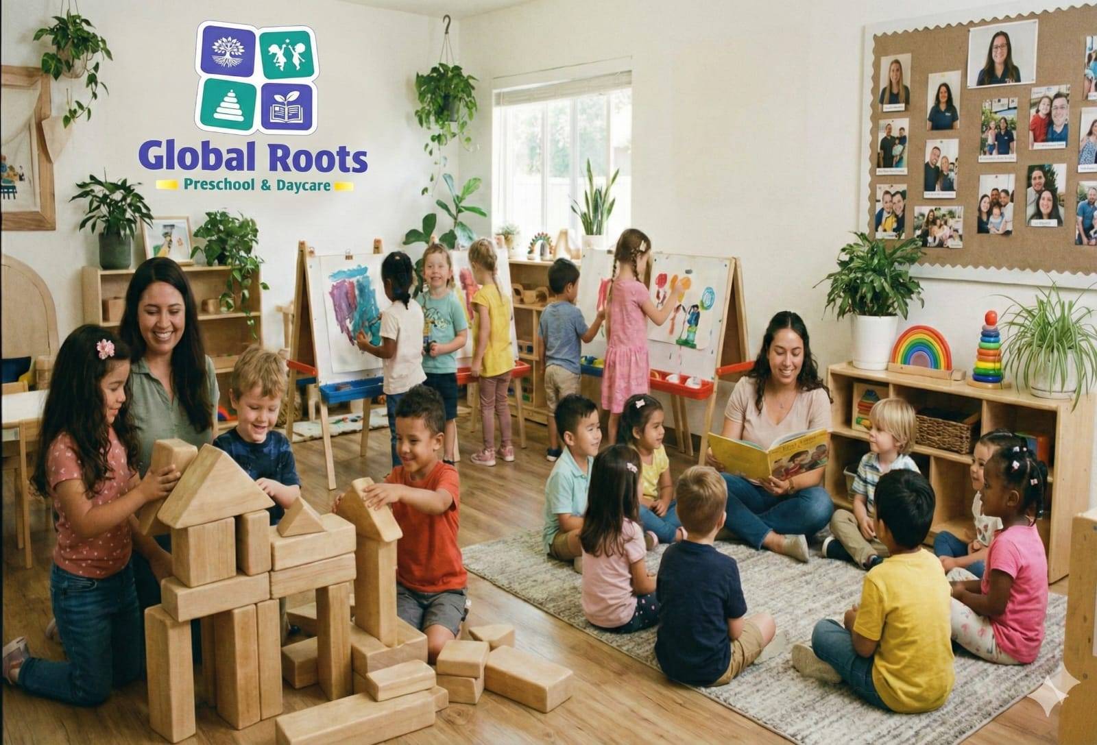 At Global Roots Preschool & Daycare, we believe in nurturing young minds with care, creativity and curiosity. Our holistic curriculum blends play-based learning with foundational skills, creating a joyful environment for children to explore, learn and grow. With passionate educators and child-friendly facilities, we focus on fostering confidence, independence and a love for learning. Every child is unique and at Global Roots Preschool & Daycare, we celebrate their individuality while guiding them towards bright future. Together, let us illuminate the first steps of their educational journey.